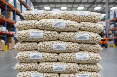 Premium raw cashew nuts and processed kernels sourced from West Africa’s top-growing regions. Our cashews offer high out-turn ratio (48–52 lbs), uniformity, and exceptional flavor.